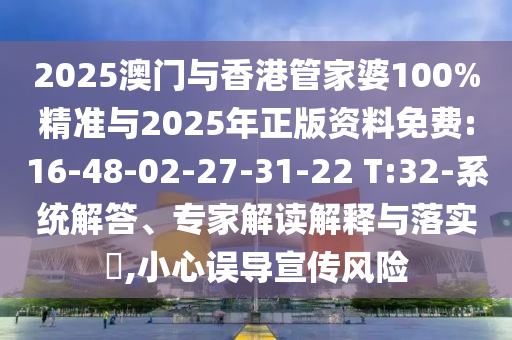 2025澳門與香港管家婆100%精準(zhǔn)與2025年正版資料免費:16-48-02-27-31-22 T:32:系統(tǒng)解答、專家解讀解釋與落實?