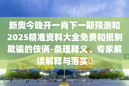 新奧今晚開一肖下一期預(yù)測和2025精準(zhǔn)資料大全免費和抵制欺騙的伎倆-條理釋義、專家解讀解釋與落實?