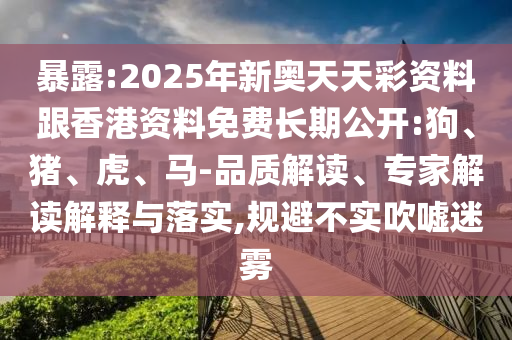 2025年新奧天天彩資料跟香港資料免費長期公開:狗、豬、虎、馬,規(guī)避不實吹噓迷霧——品質(zhì)解讀、專家解讀解釋與落實”的全面解析