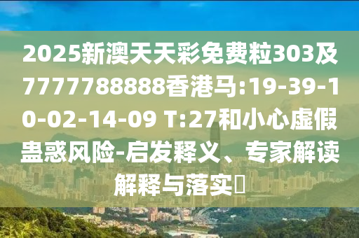 2025新澳天天彩免費(fèi)粒303及7777788888香港馬:19-39-10-02-14-09 T:27和小心虛假蠱惑風(fēng)險-啟發(fā)釋義、專家解讀解釋與落實(shí)?