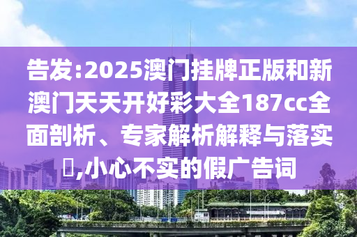 告發(fā):2025澳門掛牌正版和新澳門天天開好彩大全187cc全面剖析、專家解析解釋與落實?,小心不實的假廣告詞