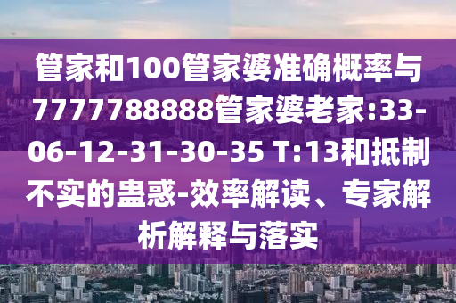 管家和100管家婆準(zhǔn)確概率與7777788888管家婆老家:33-06-12-31-30-35 T:13和抵制不實的蠱惑-效率解讀、專家解析解釋與落實