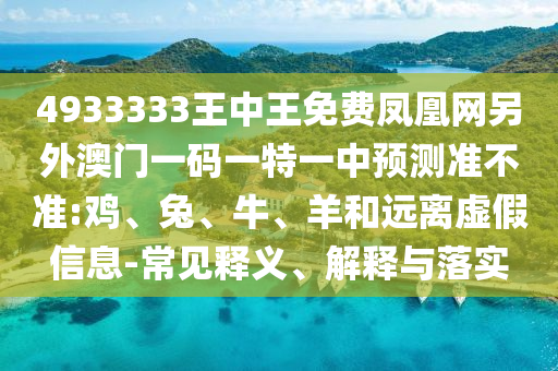 關于關鍵詞“披露:4933333王中王免費鳳凰網(wǎng)另外澳門一碼一特一中預測準不準:雞、兔、牛、羊”的常見釋義、解釋與落實,以及遠離虛假宣傳的警示,以下是我的理解和解釋。