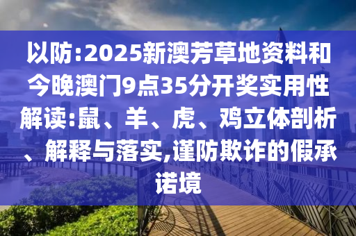 摘要:,,本文提供了關(guān)于2025新澳芳草地資料的解讀,同時(shí)針對(duì)今晚澳門(mén)9點(diǎn)35分的開(kāi)獎(jiǎng)進(jìn)行實(shí)用性分析。文章重點(diǎn)對(duì)鼠、羊、虎、雞四個(gè)生肖進(jìn)行立體剖析和解釋?zhuān)嵝炎x者謹(jǐn)防欺詐的假承諾情境。通過(guò)本文,讀者可以更好地了解相關(guān)資訊,并做出明智的決策。