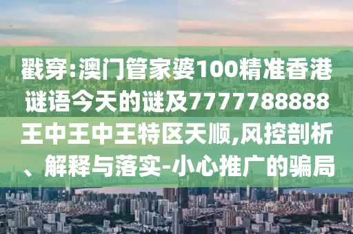 戳穿:澳門管家婆100精準香港謎語今天的謎及7777788888王中王中王特區(qū)天順,風控剖析、解釋與落實-小心推廣的騙局