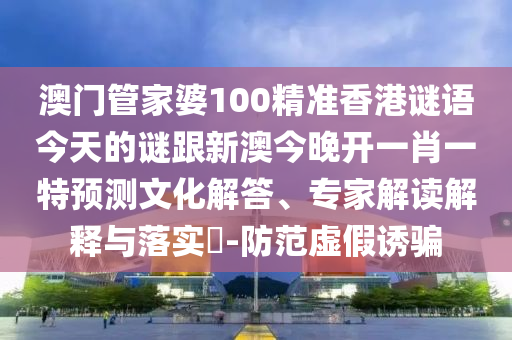 澳門管家婆100精準(zhǔn)香港謎語(yǔ)今天的謎跟新澳今晚開(kāi)一肖一特預(yù)測(cè)文化解答、專家解讀解釋與落實(shí)?-防范虛假誘騙