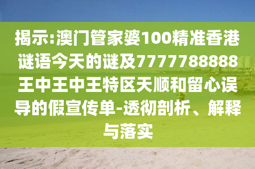 關于揭示澳門管家婆100精準香港謎語今天的謎及相關解讀與落實的剖析文章