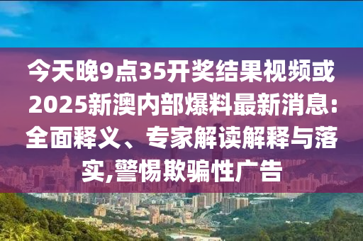 今天晚9點(diǎn)35開獎(jiǎng)結(jié)果視頻或2025新澳內(nèi)部爆料最新消息”的全面釋義、專家解讀與落實(shí)及警惕虛假宣傳