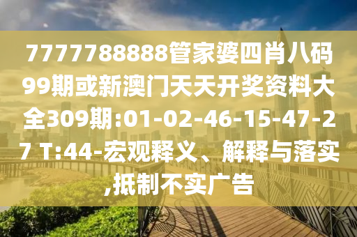 關(guān)于描述“7777788888管家婆四肖八碼99期”或“新澳門天天開獎(jiǎng)資料大全309期: 01-02-46-15-47-27 T:44”的宏觀釋義、解釋與落實(shí),以及警惕不實(shí)廣告的解析