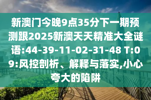 新澳門今晚9點(diǎn)35分下一期預(yù)測(cè)跟2025新澳天天精準(zhǔn)大全謎語(yǔ):44-39-11-02-31-48 T:09的風(fēng)控剖析、解釋與落實(shí)