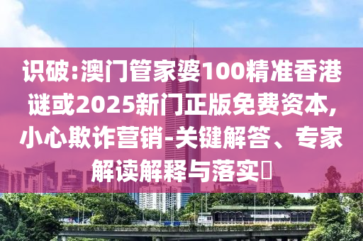澳門管家婆100精準香港謎或2025新門正版免費資本的關鍵解答、專家解讀解釋與落實?