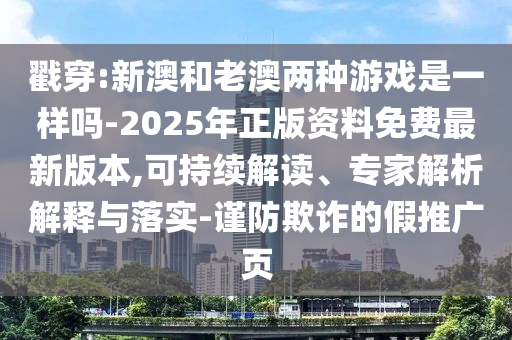 關(guān)于戳穿“新澳和老澳兩種游戲是否一樣”的疑問:全面釋義、專家解讀與落實,以及警惕虛假宣傳的重要性