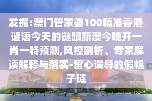 發(fā)掘:澳門管家婆100精準(zhǔn)香港謎語今天的謎跟新澳今晚開一肖一特預(yù)測,風(fēng)控剖析、專家解讀解釋與落實-留心誤導(dǎo)的假幌子鏈