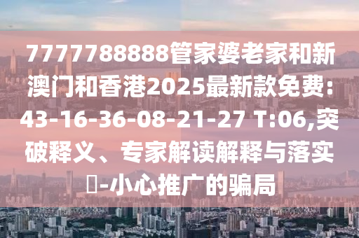 摘要:,,關(guān)于數(shù)字組合7777788888的解讀,涉及所謂的“管家婆老家”與最新款免費(fèi)信息,包括新澳門和香港地區(qū)在2025年的最新趨勢(shì)。提到數(shù)字如43、16、36等可能與某種解釋或解讀有關(guān),提醒公眾小心騙局推廣,避免陷入陷阱。此類信息需謹(jǐn)慎對(duì)待,避免受騙。