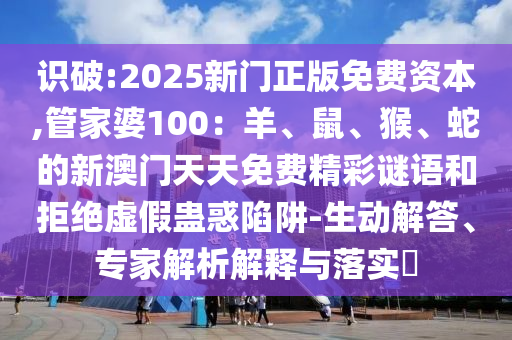 識(shí)破:2025新門正版免費(fèi)資本,管家婆100:羊、鼠、猴、蛇的新澳門天天免費(fèi)精彩謎語(yǔ)和拒絕虛假蠱惑陷阱-生動(dòng)解答、專家解析解釋與落實(shí)?