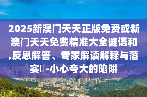 2025新澳門天天正版免費或新澳門天天免費精準大全謎語和,反思解答、專家解讀解釋與落實?-小心夸大的陷阱