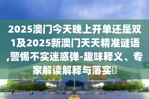 2025澳門今天晚上開單還是雙1及2025新澳門天天精準謎語的趣味釋義、專家解讀解釋與落實?