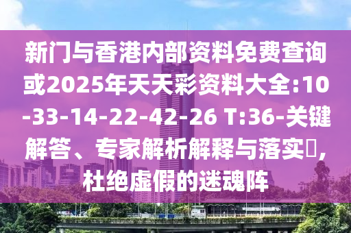 摘要:,,關(guān)于新門與香港內(nèi)部資料的免費(fèi)查詢,以及關(guān)于2025年天天彩的資料大全,包括特定數(shù)字組合如10-33-14-22-42-26等,還有關(guān)于T:36的關(guān)鍵解答、專家解析解釋等內(nèi)容的落實(shí),旨在提供真實(shí)可靠的信息。我們堅(jiān)決杜絕虛假迷魂陣,確保提供的資料真實(shí)有效,供用戶參考和使用。
