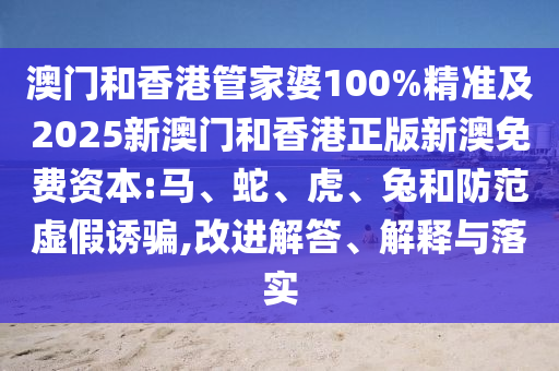 澳門和香港管家婆100%精準及2025新澳門和香港正版新澳免費資本:馬、蛇、虎、兔:改進解答、解釋與落實