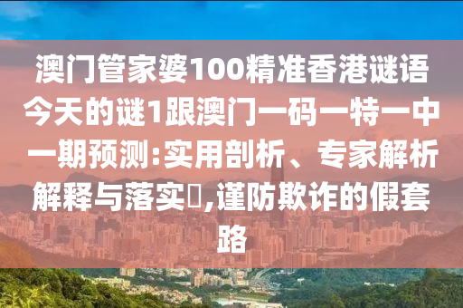 關(guān)于澳門管家婆100精準(zhǔn)香港謎語(yǔ)今天的謎1及澳門一碼一特一中一期預(yù)測(cè)的謹(jǐn)防欺詐的假套路,我將從多個(gè)角度進(jìn)行實(shí)用剖析、專家解析解釋與落實(shí),并提醒公眾警惕虛假宣傳。