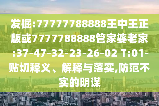 發(fā)掘:77777788888王中王正版或7777788888管家婆老家:37-47-32-23-26-02 T:01-貼切釋義、解釋與落實,防范不實的陰謀