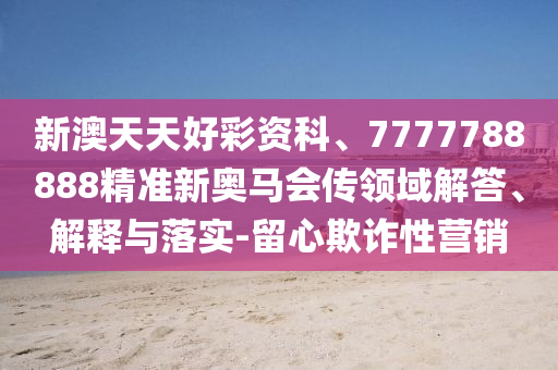 摘要:本文介紹了新澳天天好彩資科及相關(guān)領(lǐng)域的信息解答、解釋與落實(shí)工作,同時(shí)提醒公眾留心欺詐性營(yíng)銷。文章指出,7777788888精準(zhǔn)新奧馬會(huì)傳是一個(gè)信息交流與解答的平臺(tái),致力于提供準(zhǔn)確的領(lǐng)域知識(shí)和解答用戶疑問。在獲取信息的過程中,公眾應(yīng)保持警惕,避免陷入欺詐性營(yíng)銷的陷阱。