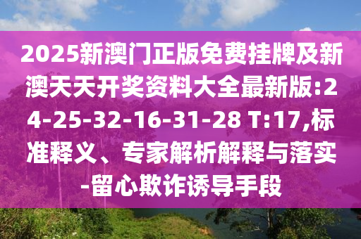 2025新澳門正版免費(fèi)掛牌及新澳天天開(kāi)獎(jiǎng)資料大全最新版:24-25-32-16-31-28 T:17,標(biāo)準(zhǔn)釋義、專家解析解釋與落實(shí)-留心欺詐誘導(dǎo)手段