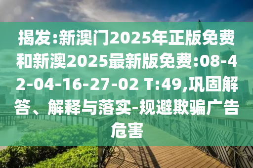 摘要:揭露關(guān)于新澳門2025年正版免費(fèi)和新澳2025最新版免費(fèi)的虛假?gòu)V告信息,涉及特定號(hào)碼如08-42-04-16-27-02。強(qiáng)調(diào)解答、解釋與落實(shí)的重要性,提醒公眾提高警惕,避免受到欺騙廣告的侵害。呼吁公眾謹(jǐn)慎對(duì)待此類信息,以免遭受損失。