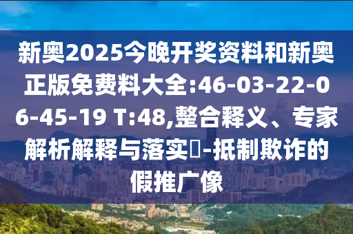 新奧2025今晚開獎資料和新奧正版免費料大全:46-03-22-06-45-19 T:48,整合釋義、專家解析解釋與落實?-抵制欺詐的假推廣像