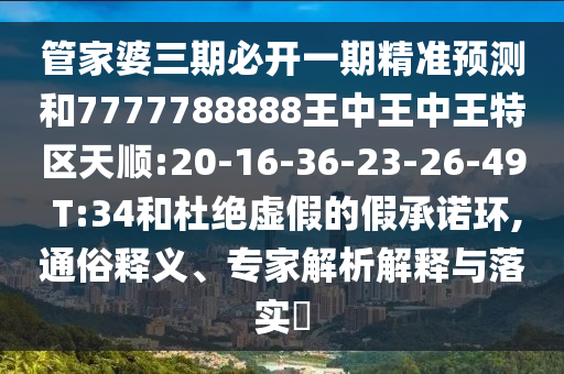 管家婆三期必開一期精準預(yù)測和7777788888王中王中王特區(qū)天順:20-16-36-23-26-49 T:34,杜絕虛假的假承諾環(huán)”的通俗釋義、專家解析解釋與落實